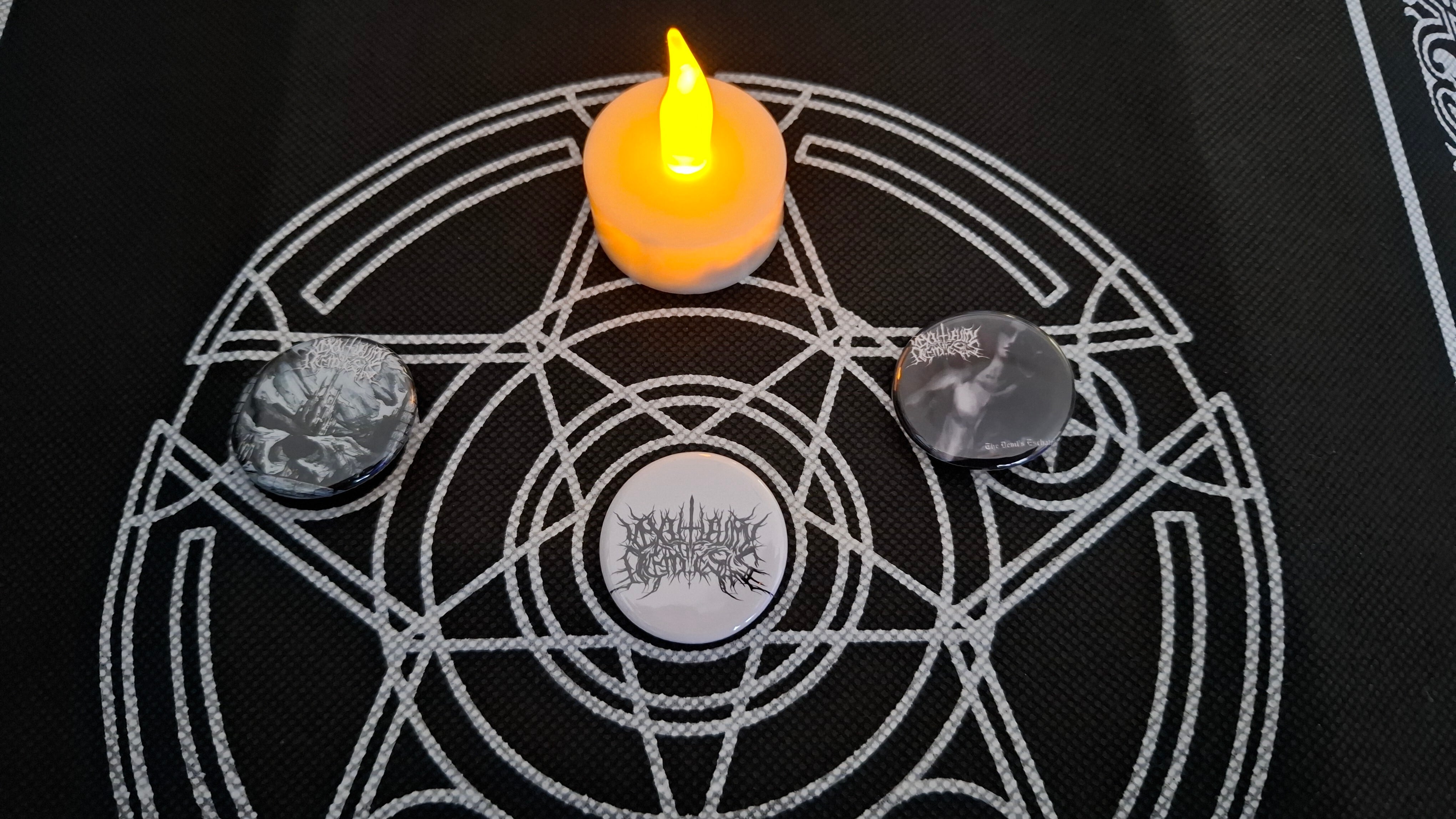 神奈川のブラックメタルEXITIUM OF NEMESISのロゴ・1st DEMO・1st Albumのデザイン缶バッチが登場。